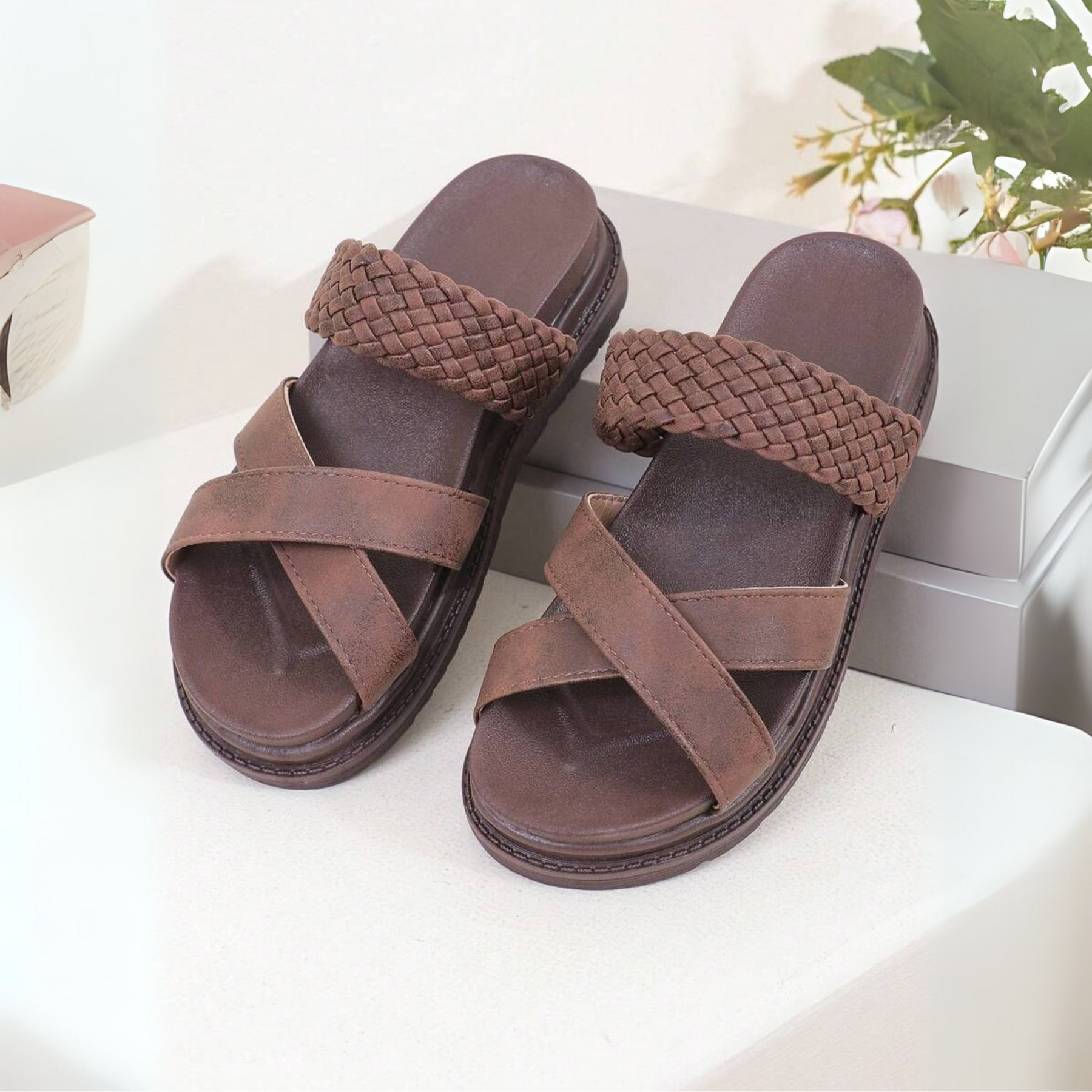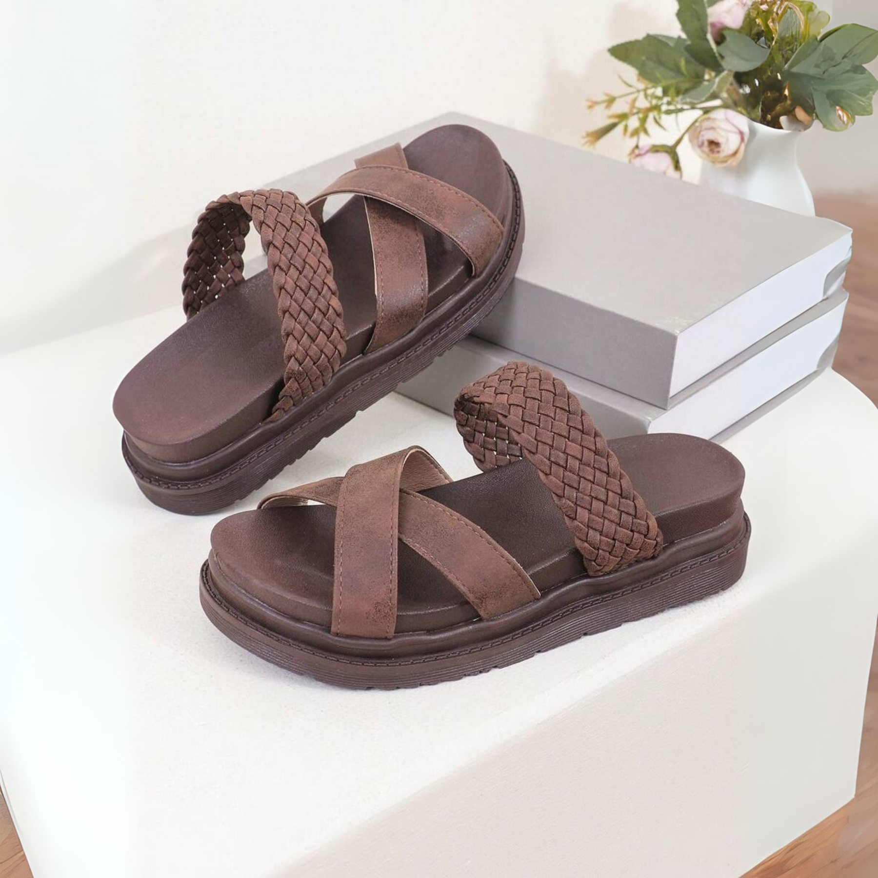 Genalin™ | Flettede plattformsandaler med korsremmer og dempende kilehæl