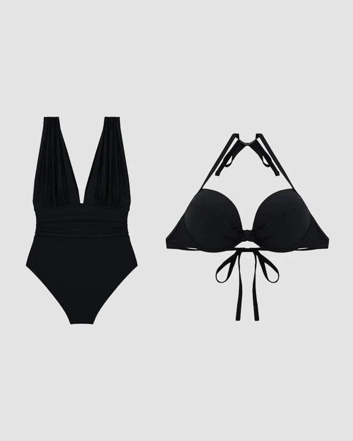 Leona™ er badedrakten du ikke bare bruker – du føler den. Med et dristig V-utringning, sofistikerte halterneck-stropper, og en flatterende passform, fremhever Leona™ din feminine styrke. Perfekt for deg som ønsker forførelse med stil.